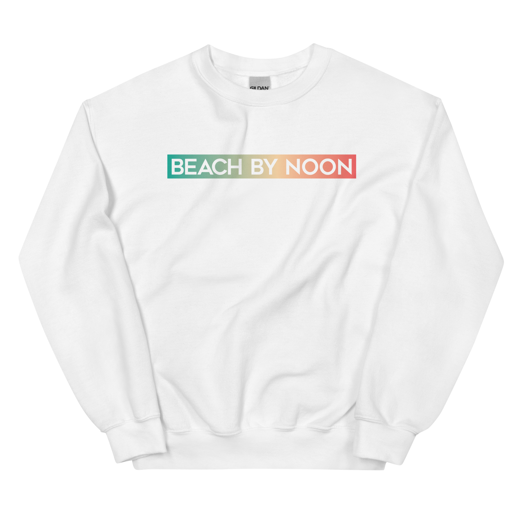 "Beach by Noon" design printed in red, yellow, and blue. Available in multiple colors. Product Details: