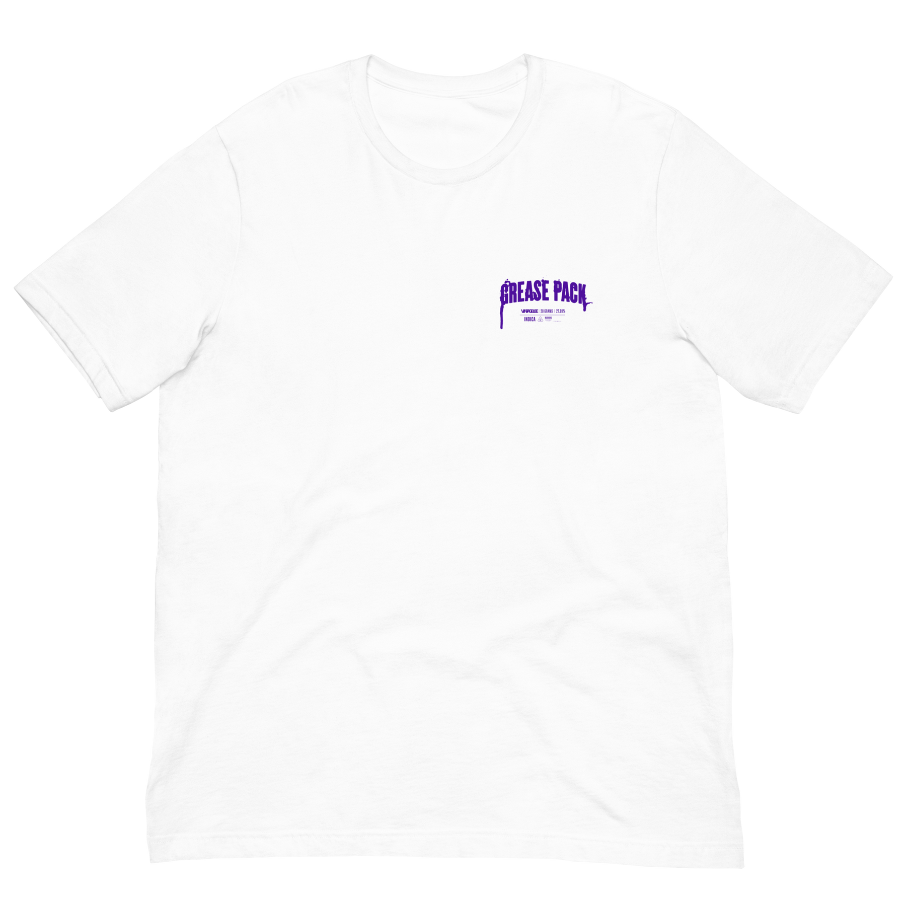 Classic fit white tee featuring Vintage Lee logo on front left chest and purple "grease pack" logo on center back.